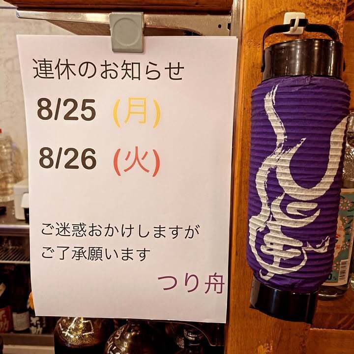 明日、8月25日(月)と26日(火)お休みさせて頂きます。